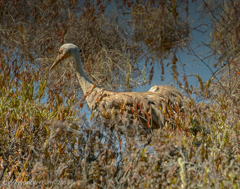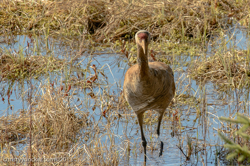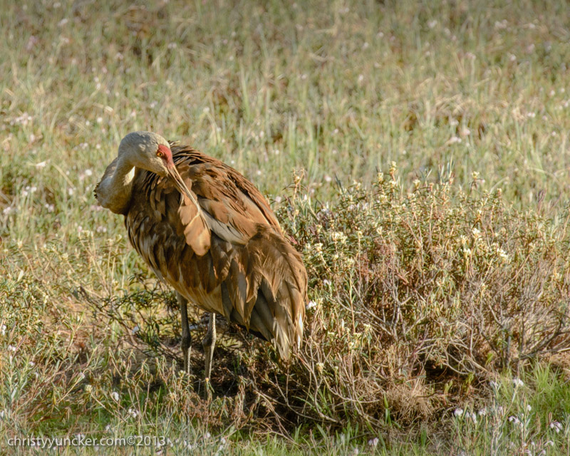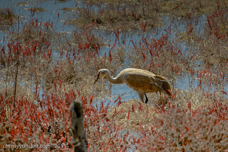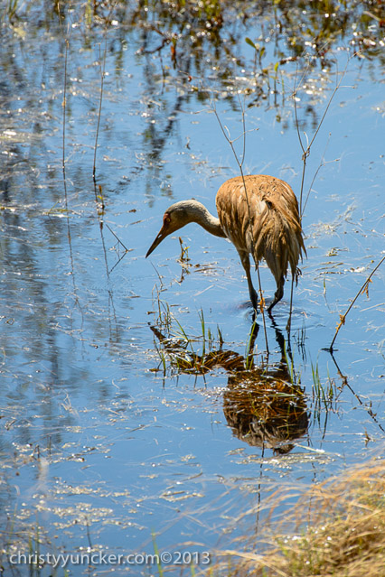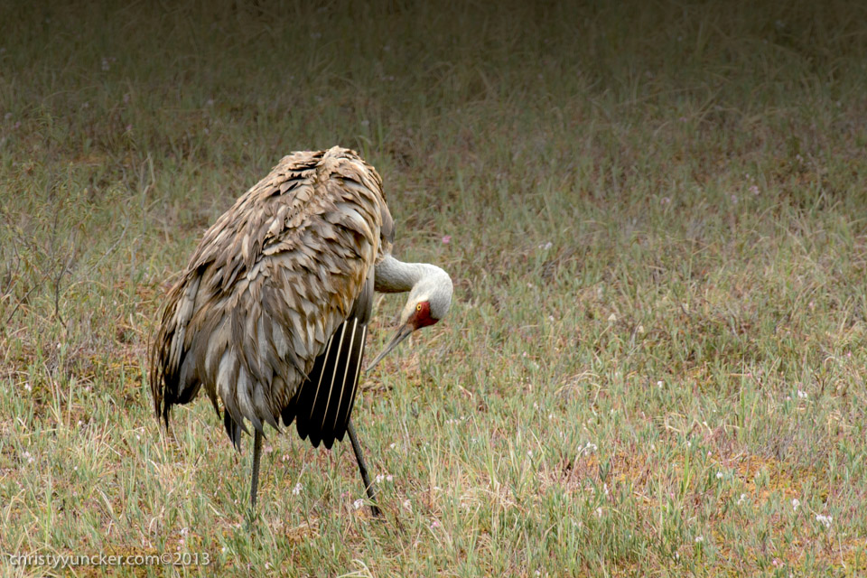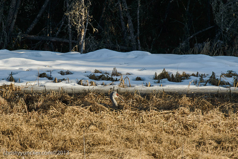 Both cranes feather paint during this time and wander their territory while the snow and ice melt.