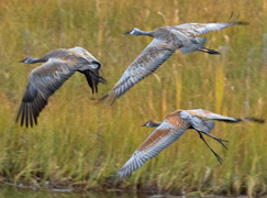 Adults usually return from migration in the last week of April, begin incubaiton between May 3 and May 6, and colts hatch 31 days later. The cranes depart on their southward migration in the first few days of September.