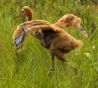- Foraging - Colts wave their pin-feathered wings and run about following the adults and eagerly responding when the parents proffer food. Oblio-08 is shown to the right.
